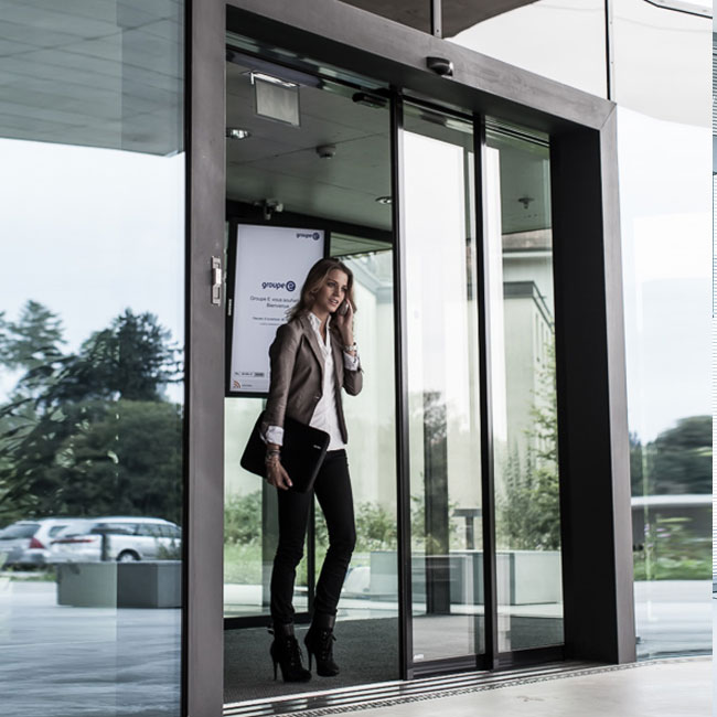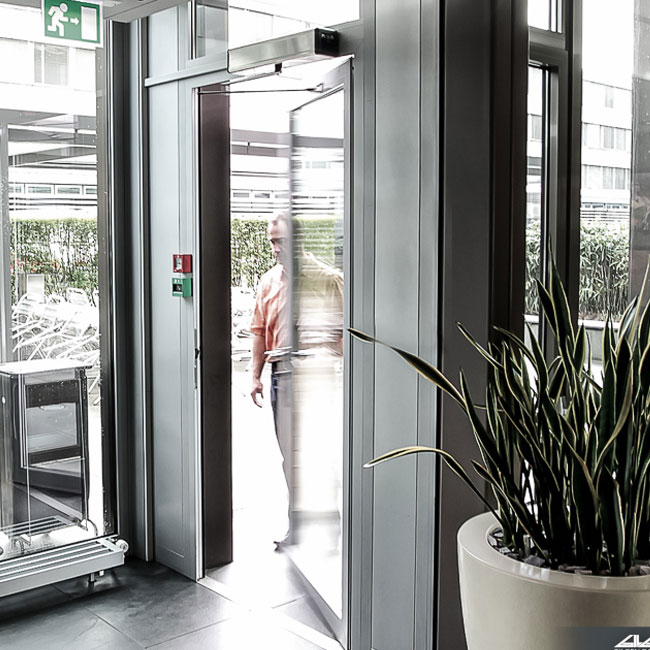 ประตูบานเลื่อนอัตโนมัติ เป็นประตูมาตรฐาน ที่นิยมใช้กันทั่วไป เพราะติดตั้งง่ายใช้เวลาไม่นาน สามารถปรับเปลี่ยนจากบานประตูธรรมดาที่มีอยู่เดิม หากพื้นที่ด้านข้างเพียงพอ เหมาะสำหรับ อาคารทั่วไป ร้านค้า ร้านอาหาร หรือ แม้แต่ที่พักอาศัย ให้ความสะดวกสบาย อีกทั้งช่วยประหยัดพลังงาน เสริมสร้างภาพลักษณ์ที่สวยงามและทันสมัย