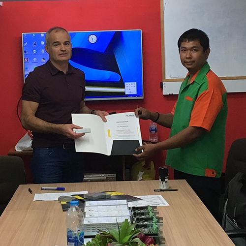 ผู้เชี่ยวชาญด้านเทคนิค จาก Switzerland เพื่อเป็นการพัฒนาคุณภาพ และเพิ่มศักยภาพให้กับพนักงานด้านเทคนิคของบริษัทฯ ในอันที่จะสามารถให้บริการท่านได้อย่างมีประสิทธิภาพ เพื่อให้ท่านได้มั่นใจในมาตรฐานของเรา